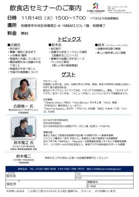 2017年11月14日(火曜日)、「飲食店セミナー」を開催します。