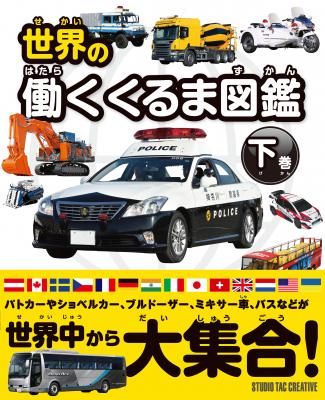 世界中の「働くくるま」を紹介する子供向けの図鑑です。ルビ付きオールカラーの誌面には、上下巻あわせておよそ1000台の車の写真が並び、ページをめくる度に新しい車との出会いがあります。