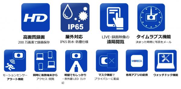 カメラを目立たせずに設置したい場所や狭小な場所など、これまでの設置環境の制限を大幅に取り払い、低額プランの携帯電話を契約するような感覚で使える新しいネットワークモバイルカメラMORECAシリーズのコンパクトな“MORECA CC300GME” で防犯・監視カメラをより身近に、そして手軽に導入いただけます。