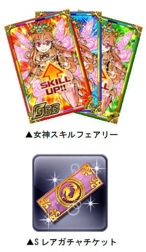 10日目…竜石 1個、Sレアガチャチケット 3枚、女神スキルフェアリー各属性 1枚