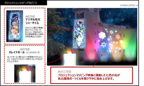 内容 : 名古屋港関係者のあいさつ、イベント概要の説明、トークショー、プロジェクションマッピング点灯、体験等