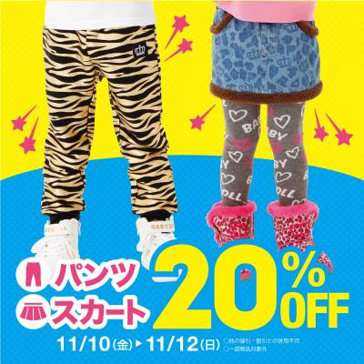 株式会社コージィコーポレーションが運営するベビー・キッズ服ブランドBABYDOLL(ベビードール)がBABYDOLL(ベビードール)・STARVATIONS(スターベイションズ)、通販各店にて<3日間限定★新作ボトム★全品20%OFF>を開催します。