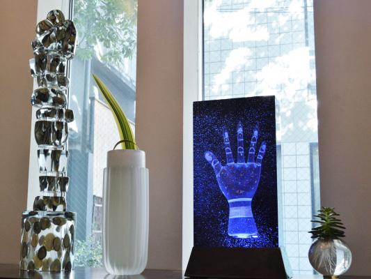 そしてふと周りを見渡せば、ムラーノ島に現存する唯一の巨匠と言われるピノ・シニョレットの貴重なオブジェも多数公開されている。