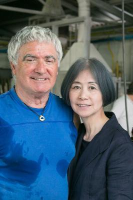 写真左:ピノ・シニョレット氏の制作風景