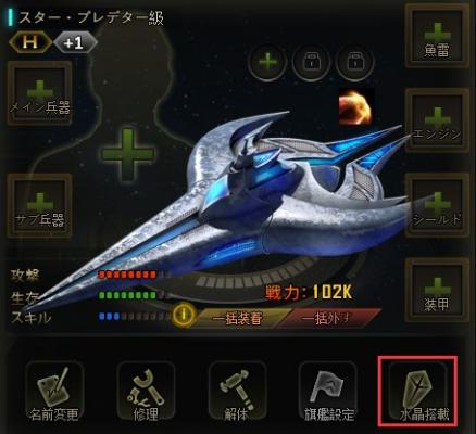 開放できる水晶の搭載枠は宇宙船ランクに影響されます。