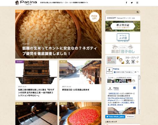 『Patina(パティーナ)』は、結わえるの理念を受け継ぎながらも、結わえるの告知サイトではなく[次世代に残したい持続可能なモノ・ヒト・コトを模索する情報サイト]として、情報媒体の末席に置いてもらえるようなサイトづくりを目標にしています。