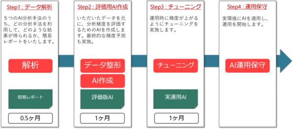 また、AI学習モデル作成を含めた導入支援サービス(図2)も用意します。これにより、包括的な生産現場の高速PDCAを可能にし、AIを活用した将来予測への取り組みを支援します。