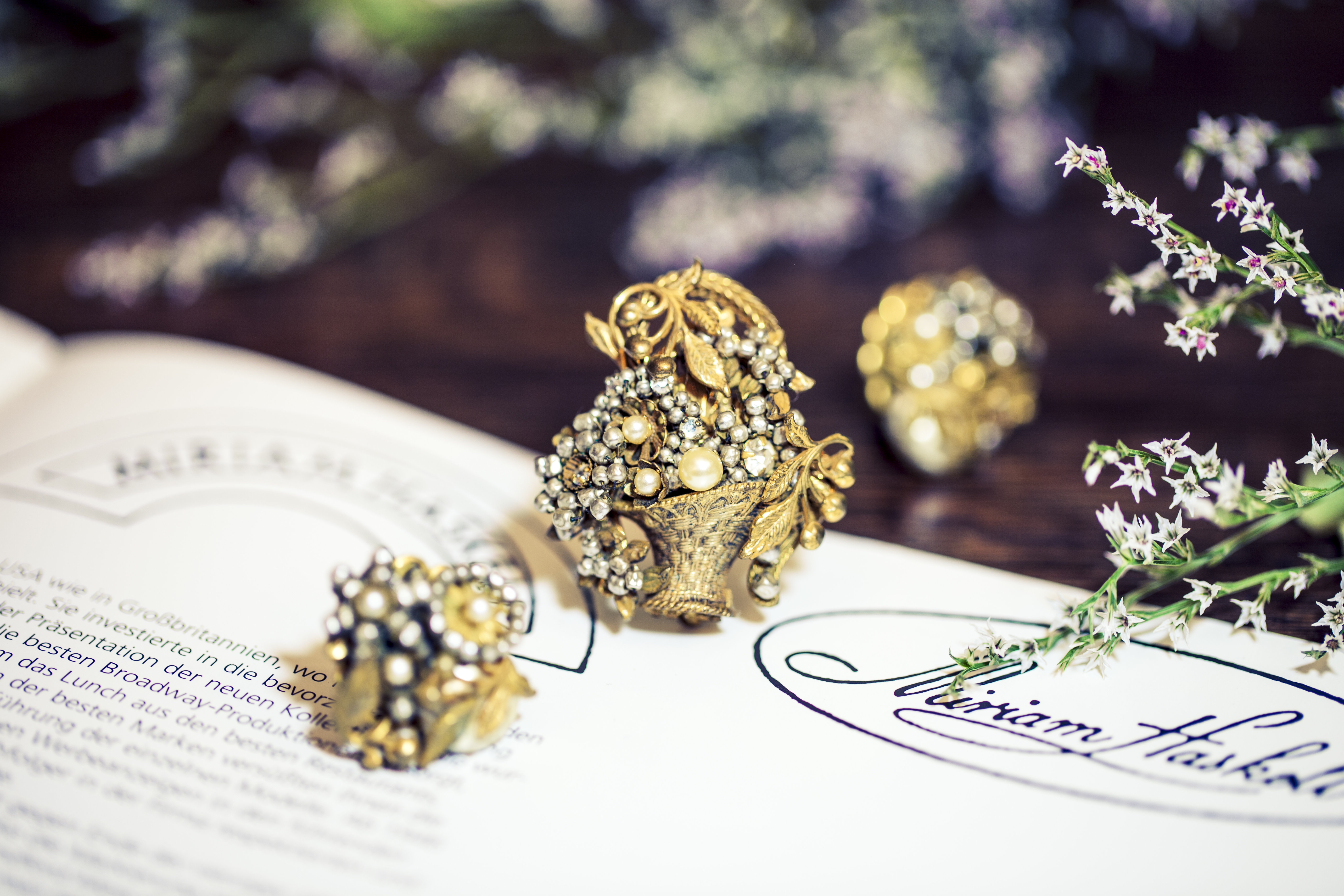 ココ・シャネルの「私が付ければ本物に見える。」という名言も知られているが、フランスで徐々に広がり、アメリカに渡ってあっという間に浸透したこのコスチュームジュエリーは、シャネルはもちろん、クリスチャン・ディオールやイヴ・サン・ローランからも多く発表されており、写真の日本でも人気のミリアム・ハスケルはコスチュームジュエリー専門のブランドだ。