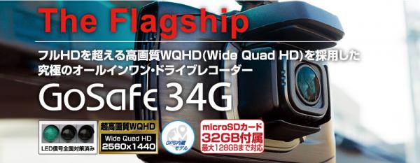 フルHDを超える!業界最高クラスの高解像度WQHDを採用した「GoSafe 34G」は撮影力+技術力+耐久力という3つのチカラを備えた究極のオールインワン・ドライブレコーダーです。
