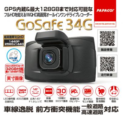 PAPAGO JAPAN株式会社は、フルHDを超える!WQHD高画質を採用した究極のオールインワン・ドライブレコーダー「GoSafe 34G」を2017年11月17日(金)から発売します。