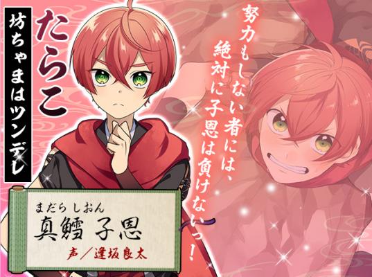 「真鱈 子恩」は、逢坂 良太さんが演じる名家の跡継ぎとして自尊心や向上心が強く、自分にも他人にも厳しい面と、少年らしい純粋な面を持つキャラクターです。