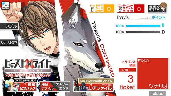 チケットアイテム(コンティニューチケット)を使用しシナリオを読み進めます。
