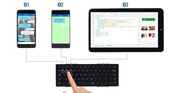 3つ折りでコンパクトに持ち運べるBluetoothキーボード。