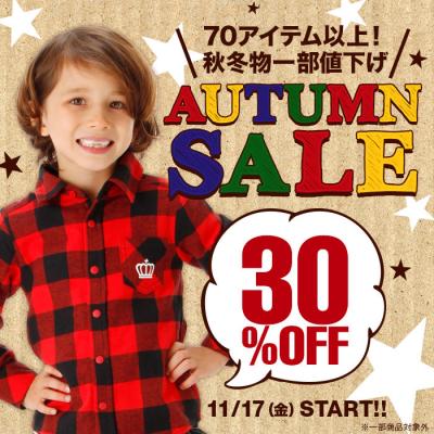 株式会社コージィコーポレーションが運営するベビー・キッズ服ブランドBABYDOLL(ベビードール)がBABYDOLL(ベビードール)・STARVATIONS(スターベイションズ)、通販各店にて、11月17日(金)より<秋冬先行SALE★対象アイテム★30%OFF>を開催します。