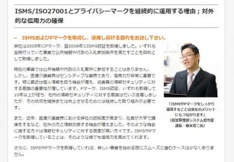 インキュベクスは、情報セキュリティの取り組みとして、プライバシーマーク(第10860211 号)及びISMS(ISO27001/認証登録番号 JP09/080090)を取得していますが、その更新を含む情報セキュリティ活動の運用コンサルティングをLRM株式会社に依頼しており、同社の事例紹介の一環として今回取材が行われ、掲載へとつながりました。