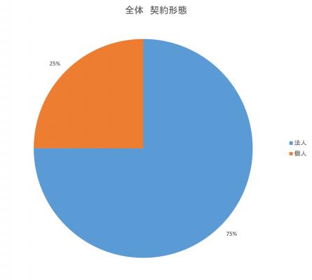 【契約形態・全体】法人75%(592契約):個人25%(197契約)