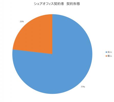 【契約形態・シェアオフィス】法人77%(93契約):個人23%(28契約)