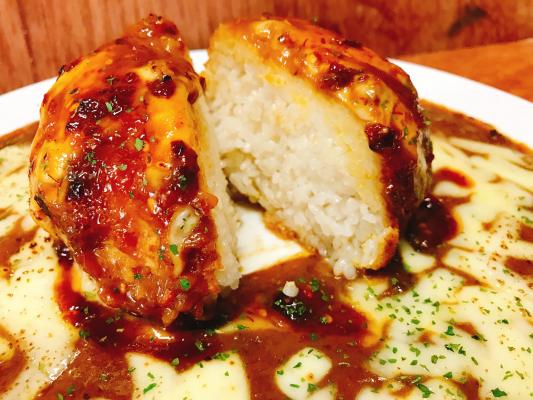 おにぎりを再現するためにカレーの中にライスボールを使用