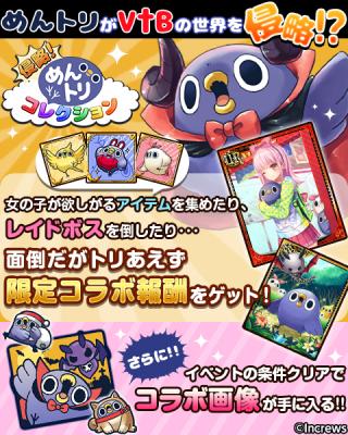 ヴァンパイア†ブラッドのゲーム内では完全描き下ろしの<めんトリコラボカード>や<レイドボスとなっためんトリ>が登場し、ここでしか手に入らない限定報酬もGETできるなど、めんトリファンにとって見逃せないイベントとなっています。