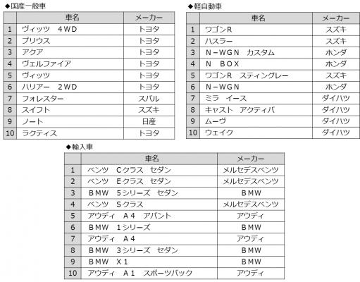 当ランキングは、全国約14,000店の中古車販売店が販売プロセスの一環であるTVオートオークションを利用し、ご成約頂いた車両について、国産一般車・軽自動車・輸入車に分けて集計したものです。