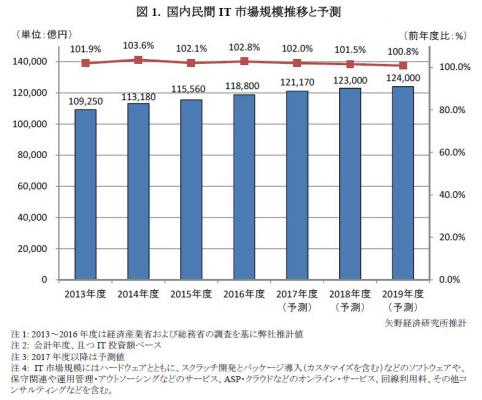 ◆2017年度の国内民間企業のIT市場規模は前年度比2.0%増の12兆1,170億円と予測、