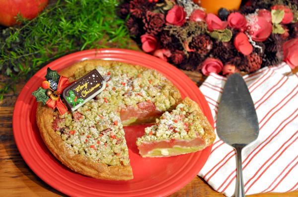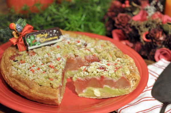 華やかなクリスマスカラーで彩る「苺とピスタチオのクリスマスアップルパイ」