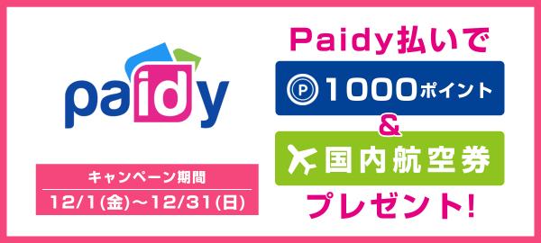 Paidy払いで1000ポイント&国内航空券プレゼント!キャンペーン