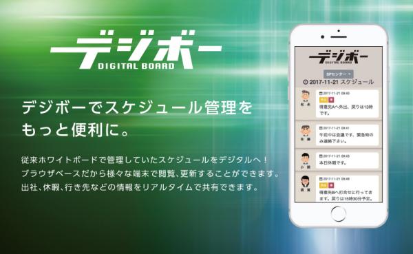 『DIGITAL BOARD デジボー』は主に中小企業向けに開発した、ウェブブラウザでメンバーのスケジュール管理を行えるWebアプリケーションです。