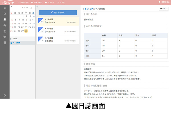 幼稚園・保育園・こども園のICT化支援に取り組む株式会社サンロフト(静岡県焼津市、代表取締役社長:松田敏孝)は、2017年12月1日、園向け「nanoty(ナノティ)」を発売しました。この園向け「nanoty」は、職員の絆と知識を深める園内情報共有システムとして、職員同士のコミュニケーション向上と情報共有の活性化を主目的に開発されました。事務処理を効率化させるシステムは多数あるため職員間の情報共有に特化したSNSが欲しいという園経営者の要望を受け、今回の開発に至りました。モニター園として、学校法人リズム学園 公私連携幼保連携型認定こども園 はやきた子ども園をはじめ、複数園からのリクエストに応じたシステムとなっています。