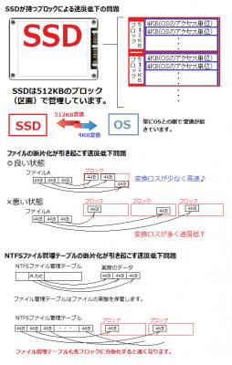 このブロックによりファイルに断片化が発生してブロックをまたぐと速度が低下します。