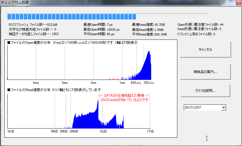 1.SSD上のファイルを全て検査してアクセス速度から正常か調べます