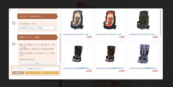 本機能はAIプラットフォームを活用したチャット形式のコミュニケーションツールです。シーンに合わせた商品の提案や、サイト利用についての質問、育児に関する相談などに対応します。