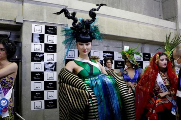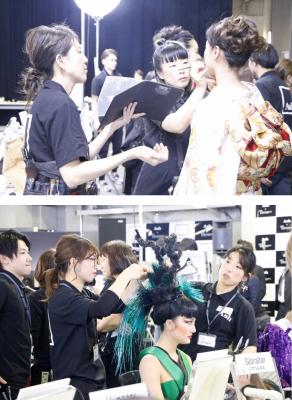バックステージでは、アッシュのスタイリストが世界各国のミスたちや来年の世界大会を目指す日本代表候補者たちを、より一層美しく輝かせるためにそれぞれの技術を発揮してヘアメイクを行いました。