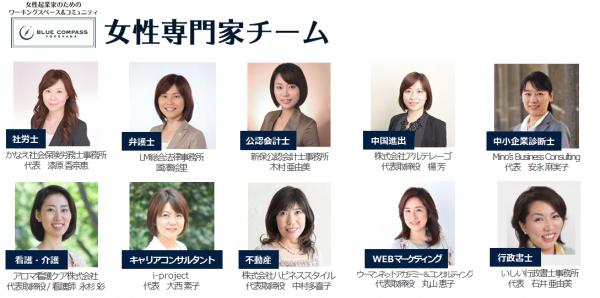 そこで、ブルーコンパスでは、様々な領域で活躍している女性専門家の方々にご協力いただき、女性起業家が安全にビジネスを進めるためのサポート制度を提供する予定です。
