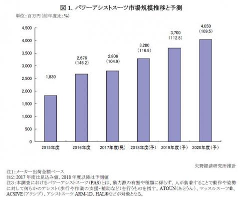 ◆2020年度の国内のパワーアシストスーツ市場規模は、40億5,000万円まで成長と予測