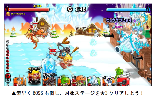 12月16日(土)より、討伐イベント「氷の女王」で、ステージを★3クリアした時の基本獲得キーンが1.5倍になる「討伐キーン中盛りキャンペーン」を開催いたします。討伐に挑み、キーンの大量獲得を目指しましょう!
