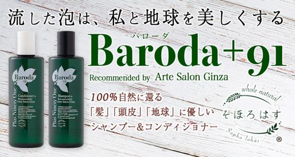 バローダ+91は、「流した泡は、私と地球を美しくする」をテーマに、シャンプーとコンディショナーの全成分が自然に還る、使う人にも環境にも優しいヘアケアシリーズです。日本人化学者が研究開発して作った天然素材の洗浄剤「そほろはす(R)(カンジダボンビコラ/マドフカロンギホリア種子油発酵エキス)」を用いた商品開発への協力依頼をPlus Ninety One社より受け、アルテグループがプロのヘアスタイリストの目線から監修致しました。