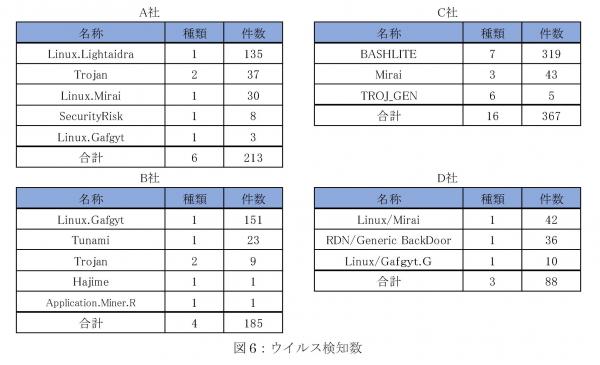 ※注:上記は検体ハッシュ値をVirusTotalに投稿した結果で、過去にVirusTotalに投稿された検体のみの結果が示されます。当観測システムで収集可能なウイルスの傾向には偏りがあるため、この結果がそのままIoTウイルスの流行の全体傾向を示しているものではありません。