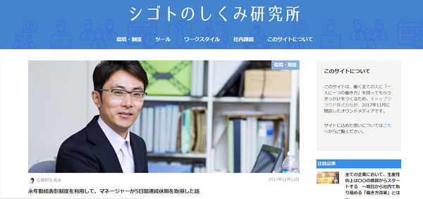 この度、キャップクラウドは、オウンドメディア「シゴトのしくみ研究所」を開設しました。こちらのメディアは、働く全ての人に「一人に一つの働き方」を持ってもらうきっかけをつくるため、キャップクラウドが、2017年11月30日(木)に開設したオウンドメディアです。仕事の環境を整備する「経営者」「人事担当者」の読者へ向けて、情報を4つのカテゴリーに分類して発信しています。