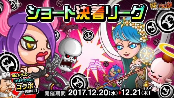 12月20日(水)より、2日間で決着する「ショート決着リーグ」を開催いたします。期間中は、大盛りリーグチケット増量キャンペーンとして1人用リーグチケットが1日10枚、協力用リーグチケットが1日2枚まで配布されます。短期集中してリーグに挑み、ランキング報酬を手に入れましょう!