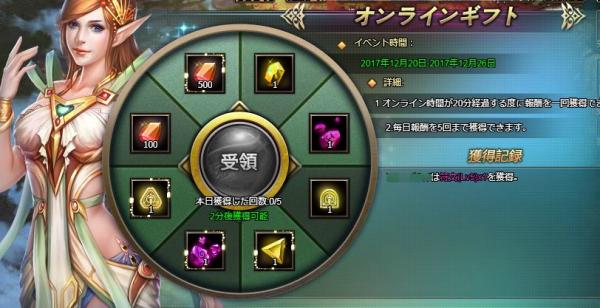毎日、オンライン時間が20分経過する度に、1回報酬を獲得できます!(1日5回まで)