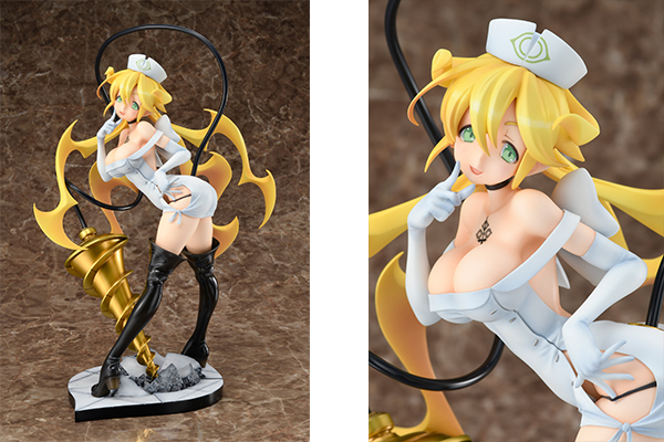 尻尾から伸びたドリルを自在に操り、トリッキーな攻撃をしかける“白衣の女神”の1人「リサ」。まるで稲妻のようなブロンドヘアはカラーモジュレーション塗装にて再現。誘うような指先とナース服からのぞく魅惑のボディライン、劇中シーンを思わせるダイナミックに岩を砕くドリルなど、ドラマティックな造形が満載となっています。