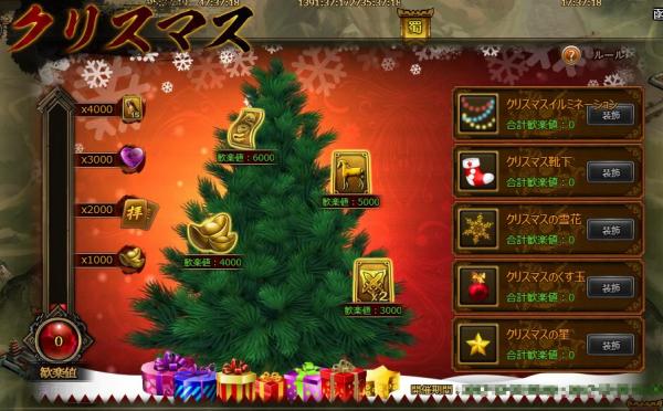 クリスマスの時期だけ獲得できる貴重な限定アイテムをツリーに飾るとポイントが貰えます。そのポイントを集めると黄金を含む豪華なアイテムを獲得できます。