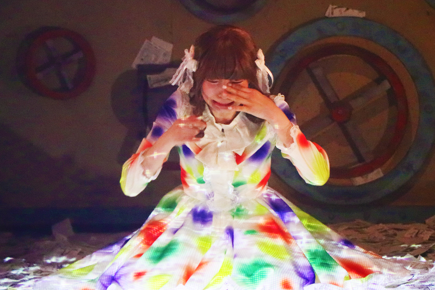 舞台全体のテクスチャを変えることによる感情の変化の可視化、など多方面から場面解説、感情表現のアプローチを行うことに成功している。そしてなんと衣装までもがプロジェクションマッピングを使ってその効果に使われているのも特筆すべき点だ。