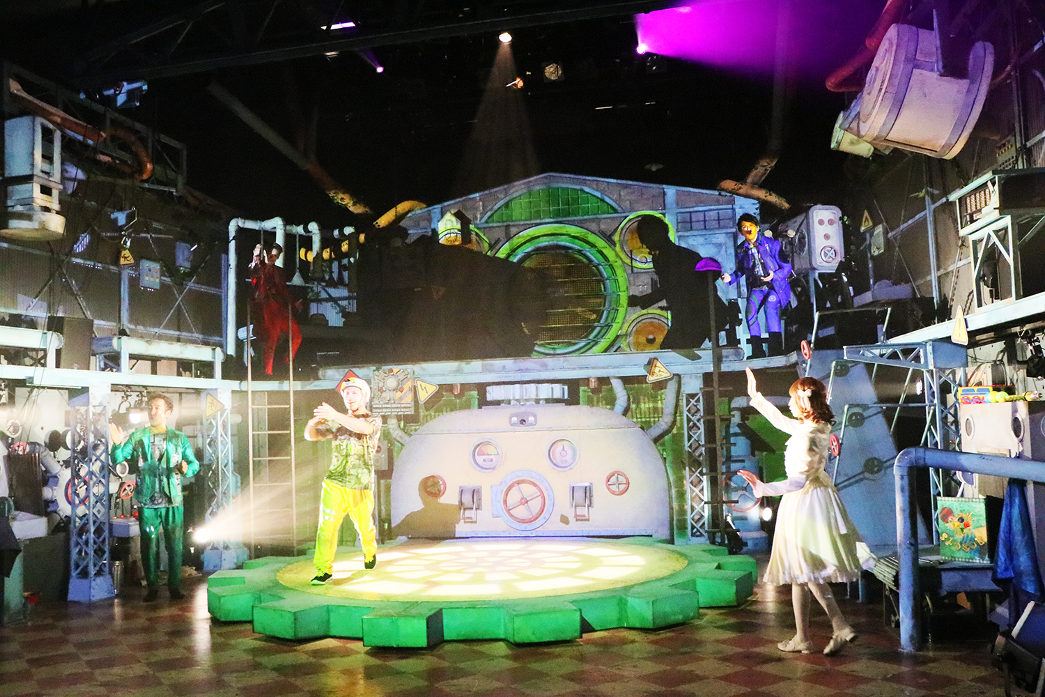 日本で唯一の舞台美術専門の賞「第43回伊藤熹朔賞」を受賞した柴田隆弘が手がけたスチームパンクファンを唸らせるリアルな舞台セット。舞台の各所が可動し、あらゆるところから工場の残留物が落下する。設置された巨大なファンが暴走し、大量の資料をまき散らしながら観客を巻き込んで大変なことに!