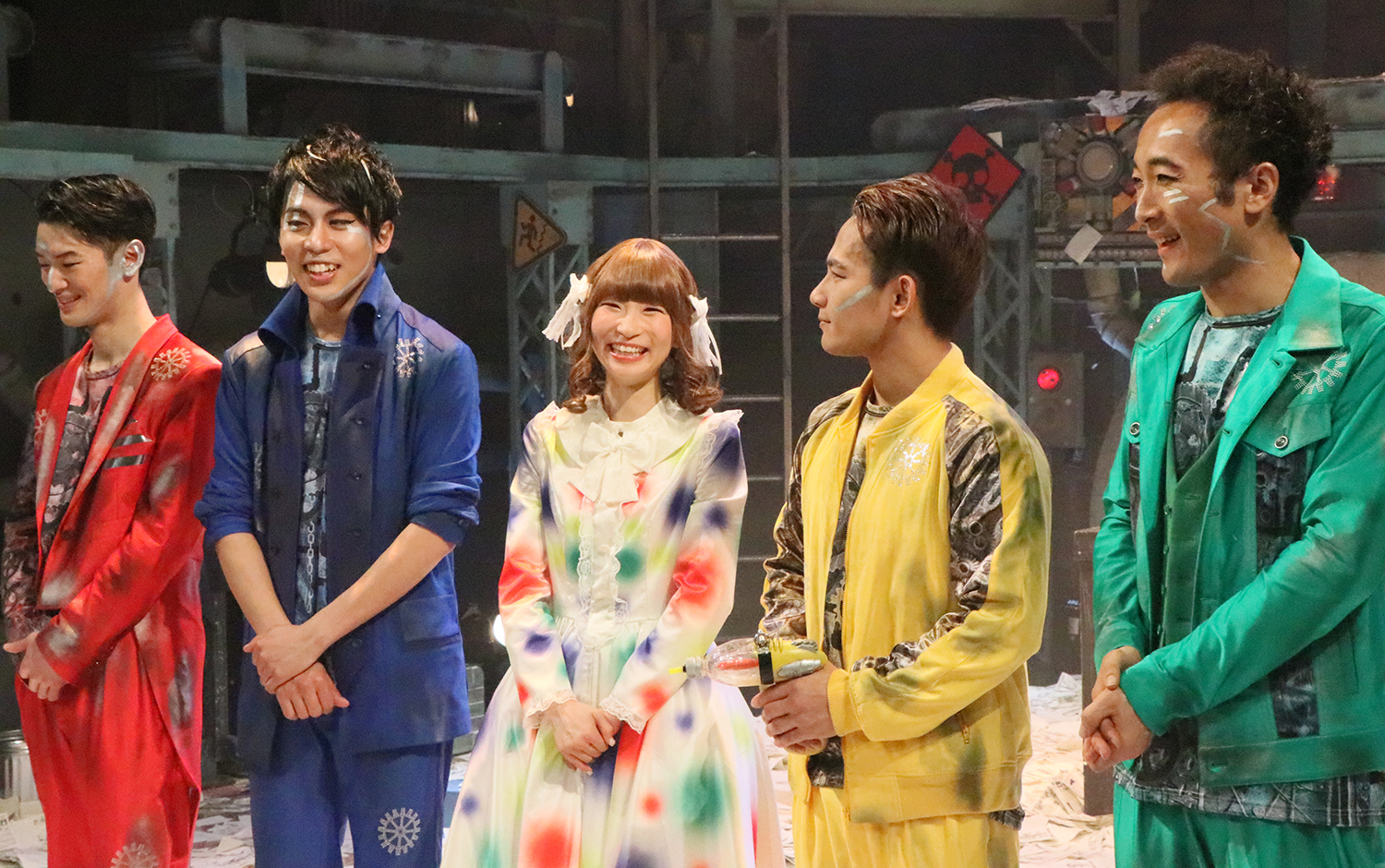 でんぱ組.incの藤咲彩音(ドール)をはじめTAKUYA(マイム)橋本昌也[特別出演](マジック)HIDE(ブレイクダンス)森田智博(ジャグリング)らパフォーマー勢が一緒に登場し出演陣の意気込みが語られた。