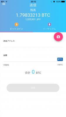 ビットコインとイーサリアムを相手に送ることができます。画面中央右のカメラマークより、送金先のQRコードを読み取れば、一瞬で送金アドレスに入力されます。また、送金額は日本円指定も可能です。なお、送金に掛かる手数料は【無料】ですので、手数料を気にする必要はございません!