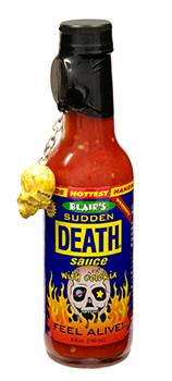 これまで味わったことがないほど辛くて美味しいリッチなホットソース『デスソース』は、ギネスブックで“世界一辛い唐辛子”と認定されたことのある「ブートジョロキア」や、「ハバネロペッパー」等を原材料に作られた激辛ソースです。