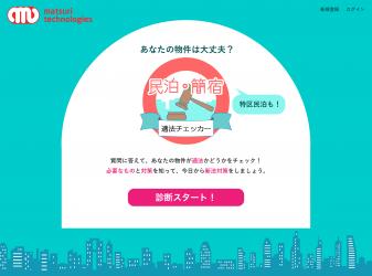 法人利用者数国内No.1の民泊運営管理ツール『m2m Systems』を展開するmatsuri technologies株式会社)は、2017年12月26日に宿泊事業者向けに民泊運用及び物件が適法かどうかを判定するサービス『民泊・簡宿適法チェッカー』東京都版をリリースしました。