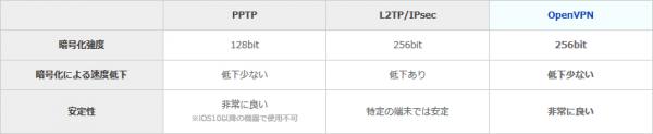 ■モバイル機器に最適。安全度も最高で通信速度も下がりにくいOpenVPN採用